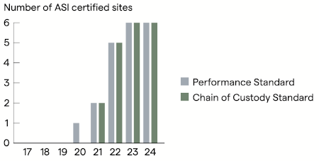 All of Gränges’ aluminium rolling and recycling sites are certified in accordance with ASI Performance Standard and Chain of Custody Standard. |